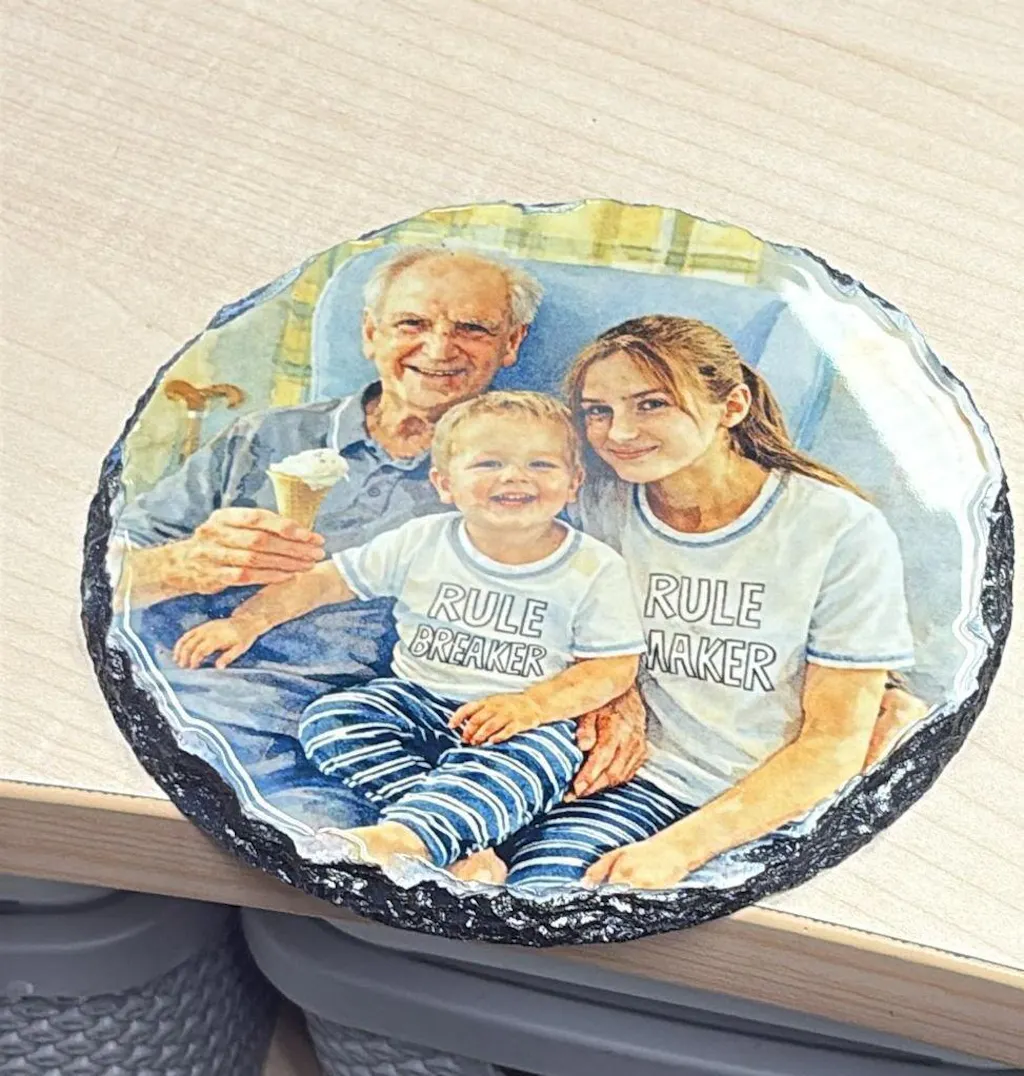 Create a beautiful keepsake with our 15cm Circle Photo Slate. Each slate is crafted with a natural, rustic edge and printed with your chosen photo, making it a stunning personalised gift for birthdays, memorials, families, pets, and special moments.